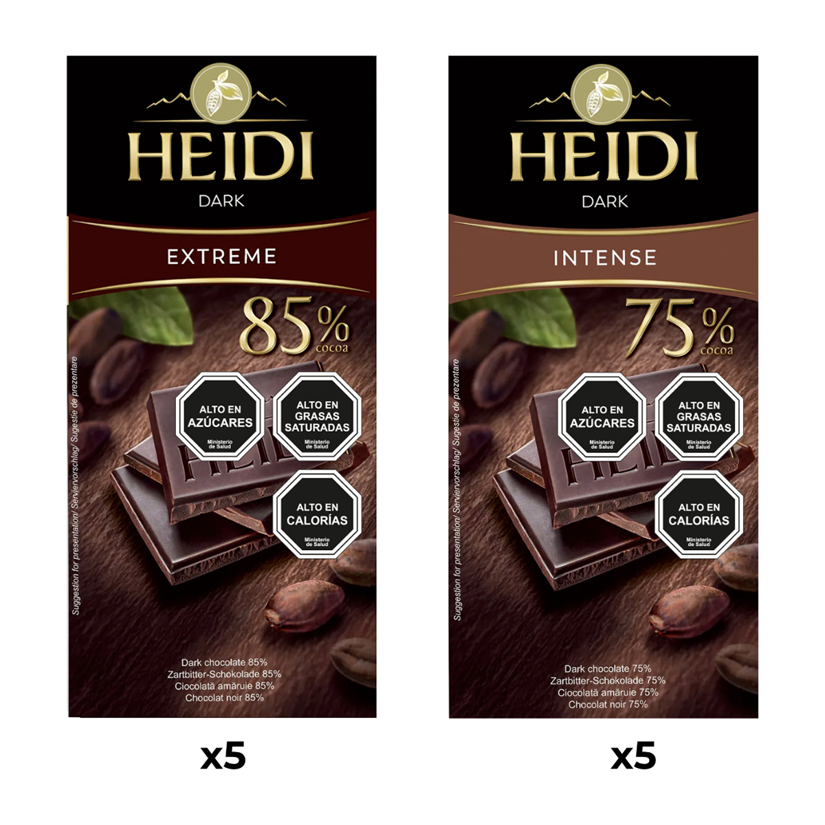 Experimenta el placer indulgente con el pack de 10 tabletas de chocolate heidi, que incluye 5 tabletas extreme de 80g y 5 tabletas intense de 80g. cada tableta ofrece una explosión de sabores excepcionales, brindando una experiencia gourmet única. este pack es perfecto para los amantes del chocolate intenso, proporcionando un festín indulgente que eleva cada momento a nuevas alturas de placer. con una mezcla única de riqueza y audacia, estas tabletas garantizan una indulgencia que despierta los sentidos y celebra la pasión por el chocolate. ya sea para regalar o disfrutar personalmente, este pack invita a descubrir los límites del placer chocolatero. sumérgete en este festín de extremos y disfruta de cada bocado.