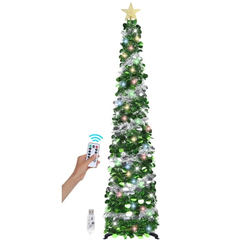 Espumillón Desplegable Hmasyo Para Árbol De Navidad, De 6 Pies, Con 100 Luces Led