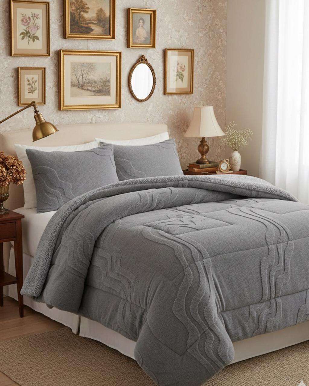 Mylhogar - Chiporro Premiun Cubrecama De Invierno Super King 250 Cm X 270 Cm Gris