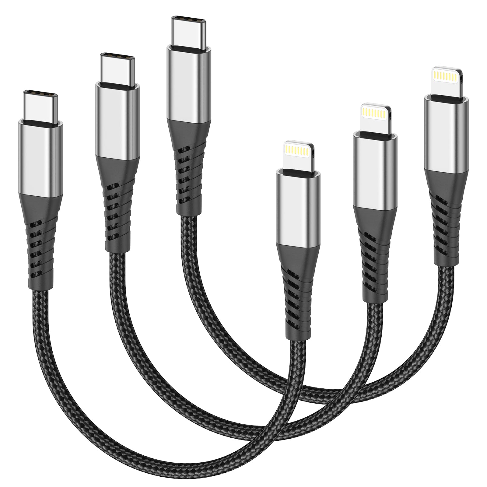 Cable corto usb c a lightning de 6 pulgadas -【carga rápida y sincronización de datos para iphone】el cable del cargador del iphone cumple con todos los estándares, velocidad de transferencia de hasta 2,4 a, carga rápida y 480 mbps, es compatible con carplay para establecer una conexión segura y estable con el sistema de entretenimiento del coche. con este cable lightning de conectividad, puedes obtener indicaciones, responder llamadas, responder mensajes y mucho más fácilmente. -【longitud perfecta de 6 pulgadas】el cable para iphone de 6 pulgadas no se enreda ni se dobla, es fácil de transportar y almacenar. este cable es perfecto para usarlo en el interior del coche, ya que elimina el lío de cables adicionales y mantiene el interior del coche limpio y organizado. para usarlo en la oficina o en el área de trabajo, este cable de longitud media proporcionará una conexión de carga estable para tus dispositivos sin ocupar demasiado espacio. -【cable lightning ultrarresistente para iphone】este cable usb a iphone cuenta con un diseño de primera categoría con una construcción trenzada de nailon de alta calidad y un conector de carcasa de aluminio 3d mejorado. tras soportar más de 20 000 pruebas de flexión y más de 10 000 pruebas de conexión, presenta una resistencia excepcional contra el agrietamiento y la rotura. -【amplia compatibilidad】compatible con todos los productos lightning de ios, incluidos el iphone 14/14 plus/14 pro max, el iphone 13/12/11/pro max/mini, el iphone xs/xr/x/se y el iphone 8/7/6/plus. también es compatible con ipad, ipods y airpods. 【lo que obtienes】paquete de 3 cables trenzados usb c a lightning de 6 pulgadas y servicio de atención al cliente postventa de 12 meses. si tienes alguna pregunta, resolveremos tu problema en 24 horas.