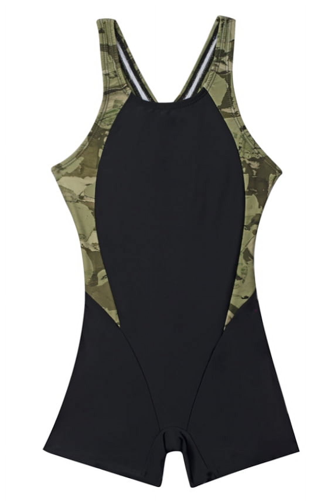 Traje de baño deportivo con piernas para niña, espalda cruzada.