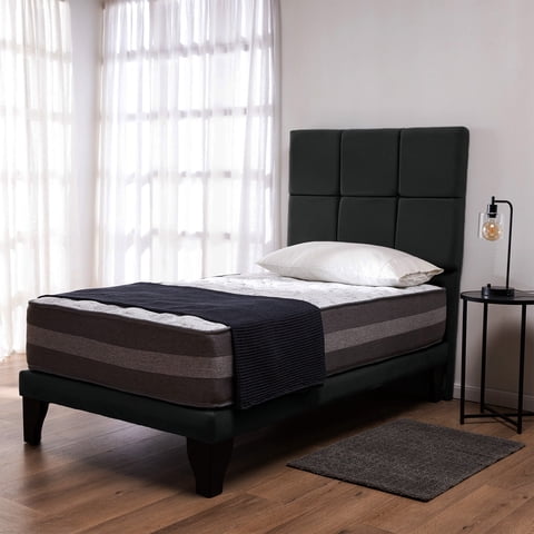 Colbox - Cama Europea Valencia P + Respaldo Atenas 1 Pl Felpa Negro