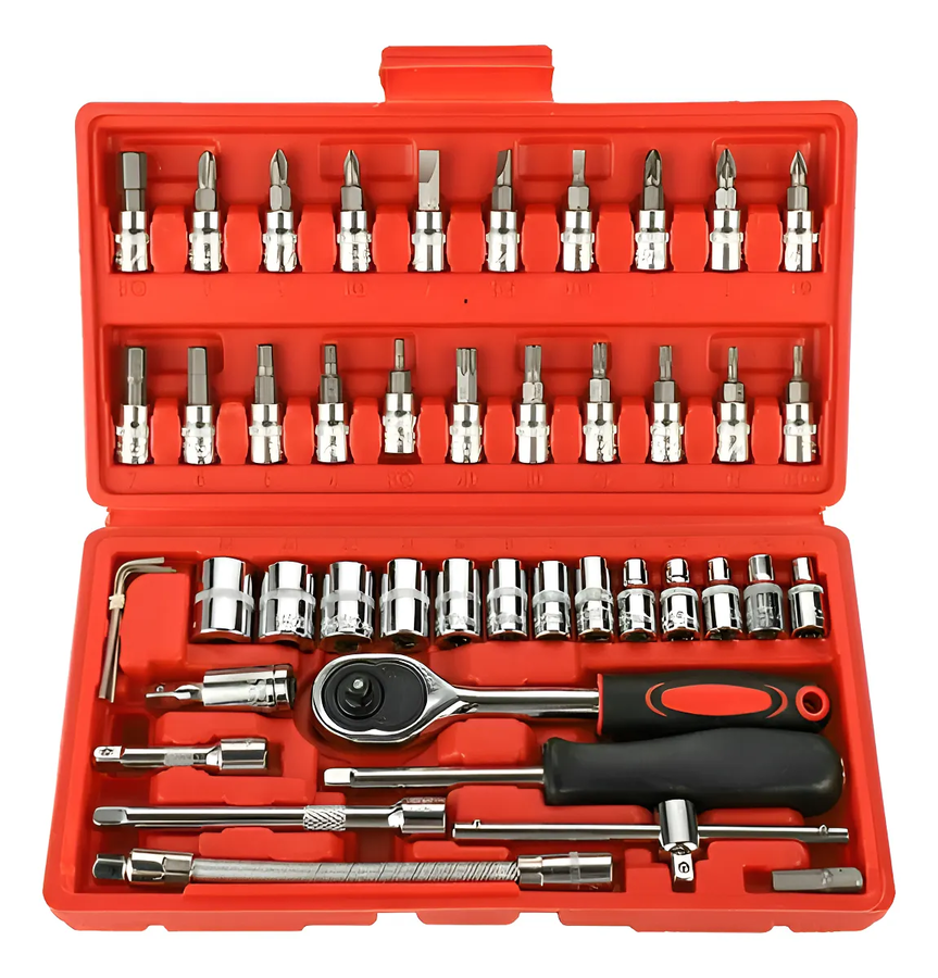 Genérico - Juego De Herramientas Mecánicas Dados Llaves Acero 46 Pcs