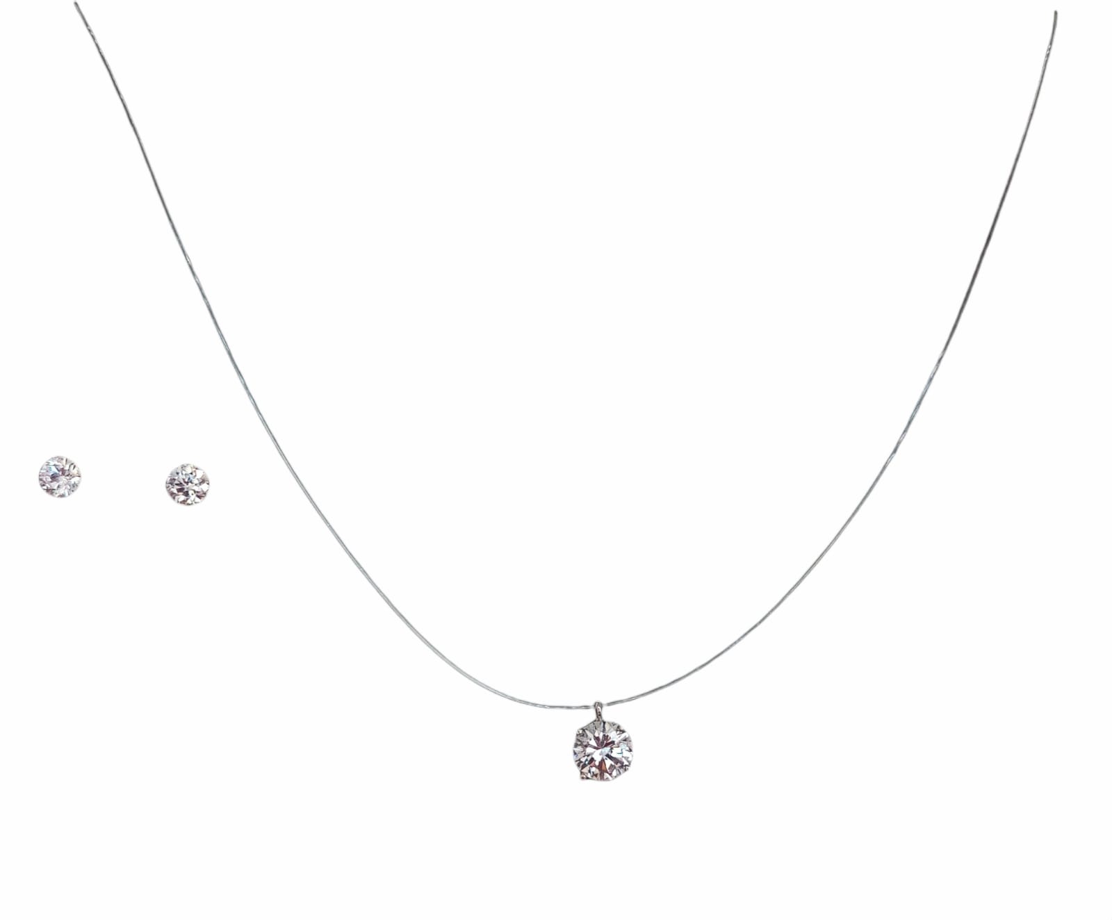 Elbauldejuma - Set Conjunto Collar Nylon Aros Punto De Luz Plata 7Mm Amor