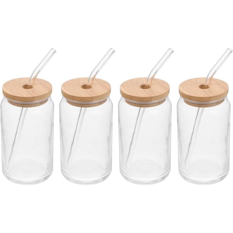Pack De 4 Vasos Lata de Vidrio Con Tapa de Bambú y Bombilla 550ml