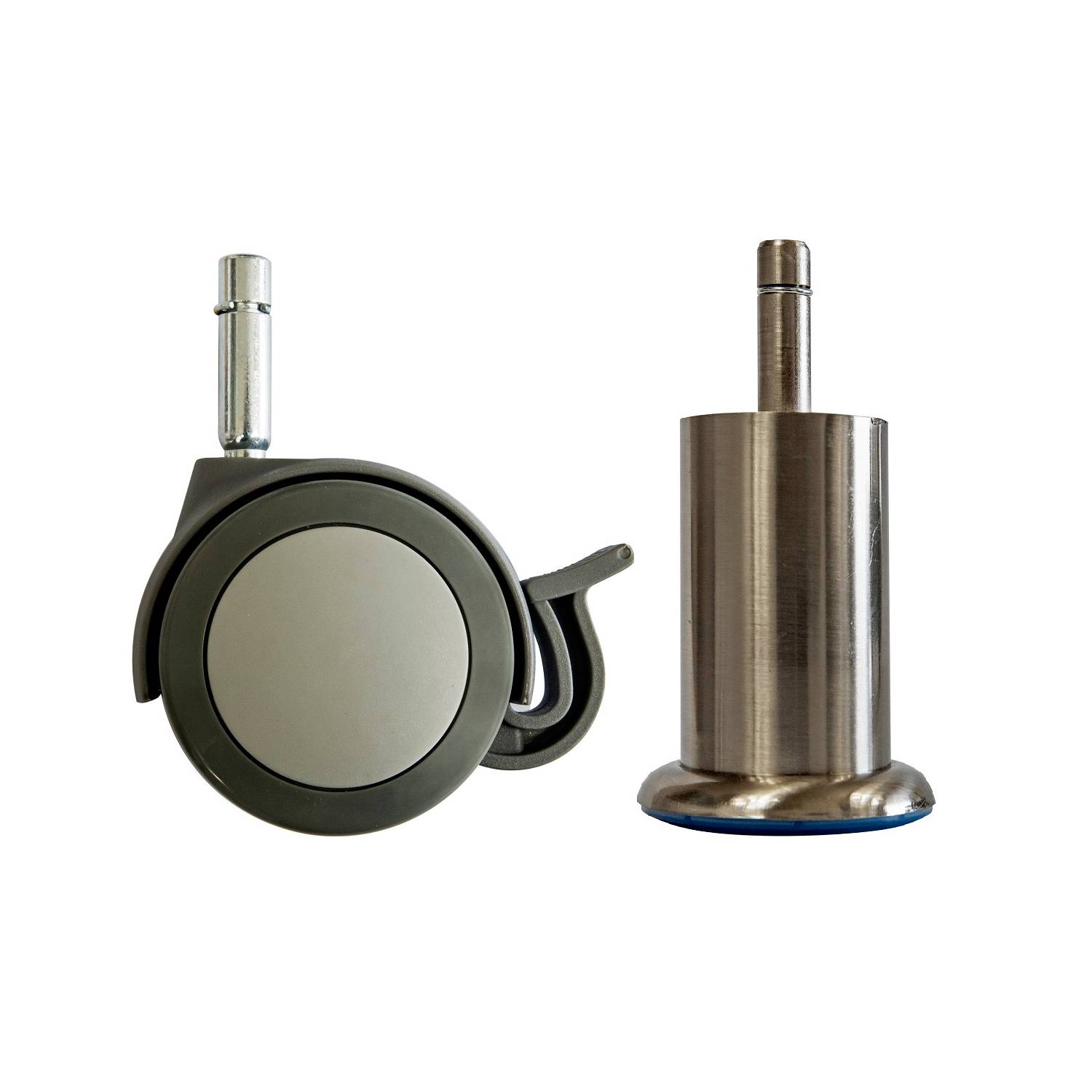 Pack 2 ruedas logo 1,2 cm + 2 patas satinadas 1,2 cm rosen rueda logo con freno para cama rosen cic, vástago 1,2 cm