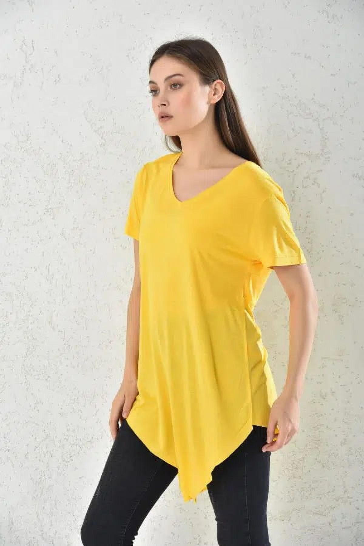Home Fashion - Polera Mujer Amarillo Manga Corta Corte Asimétrico Talla L | Lider Electrohogar