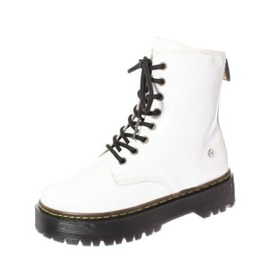 Tipo de producto: botin calce al número de la horma de chile. color blanco. marca: via franca. modelo: 5bm001white. material exterior: poliuretano. material interior: textil. material suela: poliuretano. altura caña: 15 cm. altura taco: 5 cm. contorno de la caña: 20 cm. tipo de punta: redonda. empeine: cerrado. tipo de ajuste: cordón. ocasión: urbano. el número 37 calza para un pie de largo 22,5 cm. el contorno de la caña en su parte más ancha es de 20 cm.