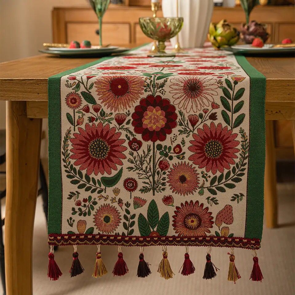 Todo Hogar Santiago De Chile - Camino De Mesa Retro Vintage Con Borlas - Floreado | Lider Electrohogar