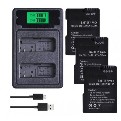Genérico - 3 Baterías En-El14 + Cargador Doble Mh-24 Alternativo Nikon | Lider Electrohogar