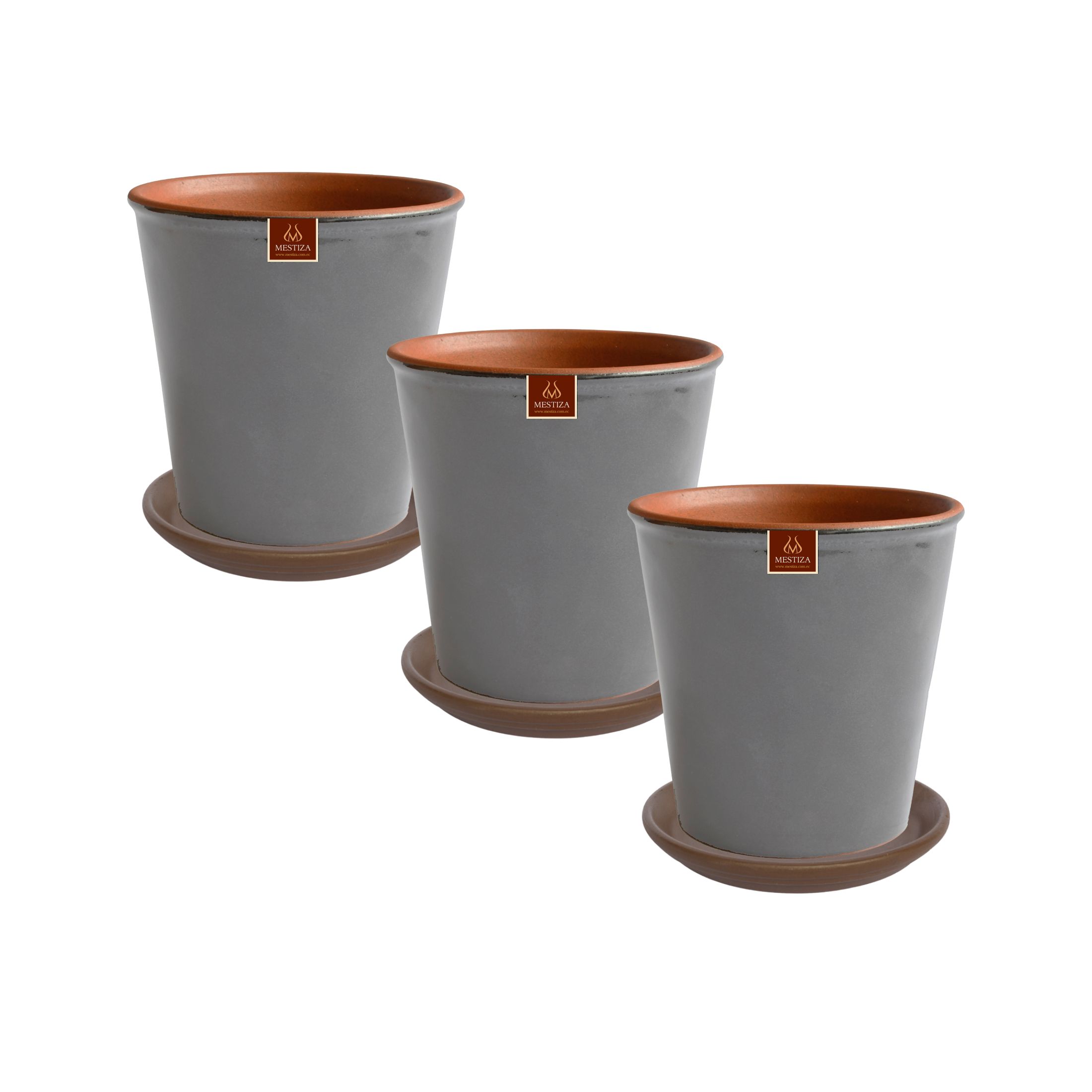 Pottery - Set De 3 Macetas Zaia 15 Cm Gris Matte Y Sus Platos | Lider Electrohogar