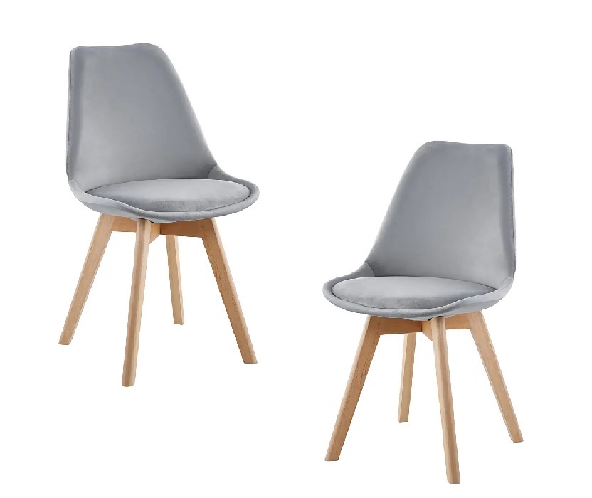 Habita2 Chile - Pack 2 Sillas De Comedor Tulip Tapizado Terciopelo O Felpa Con Base Madera - Gris | Lider Electrohogar
