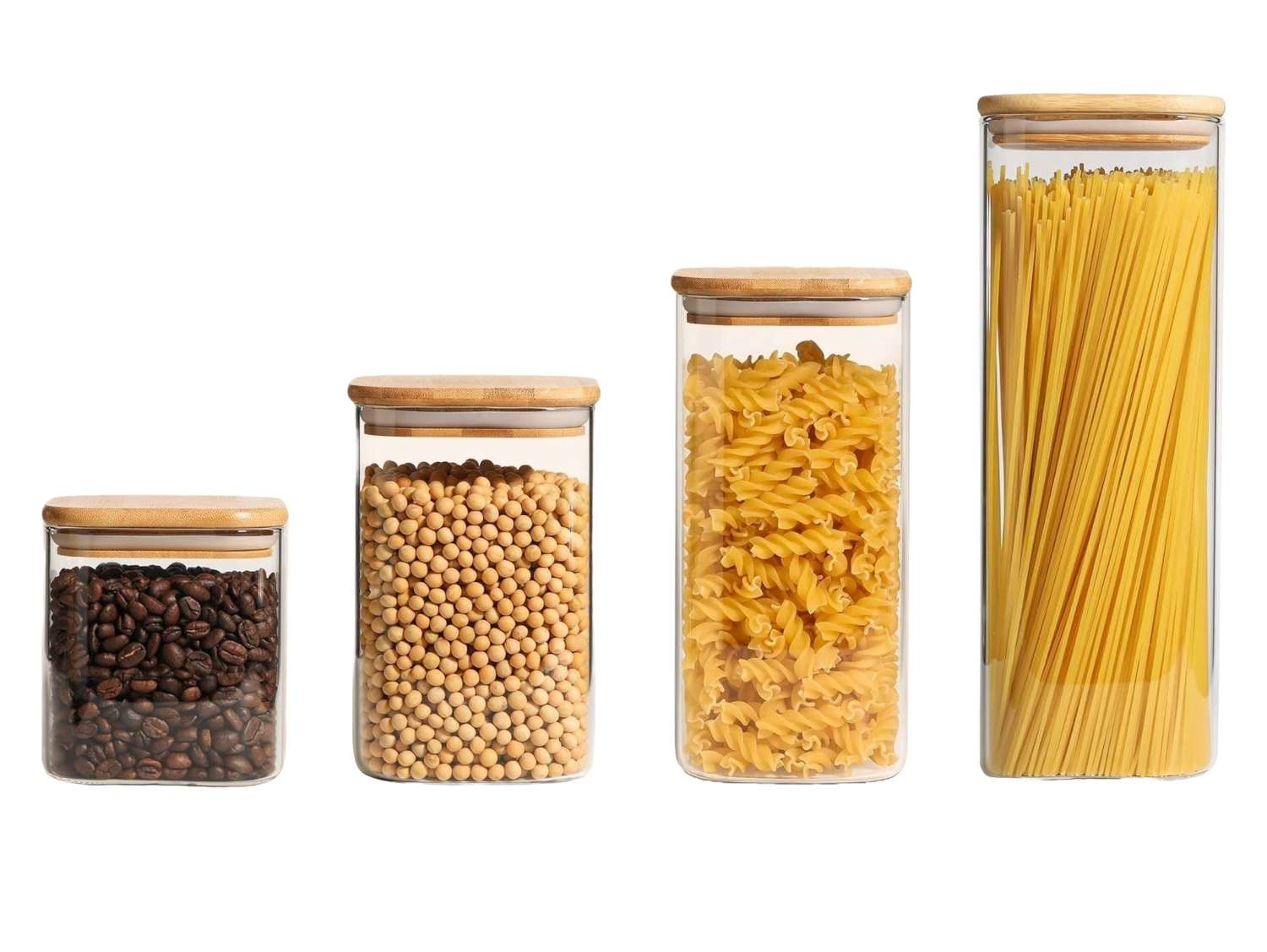 Set 4 Tarros De Almacenamiento Recipientes De Vidrio Tapa de Bambú