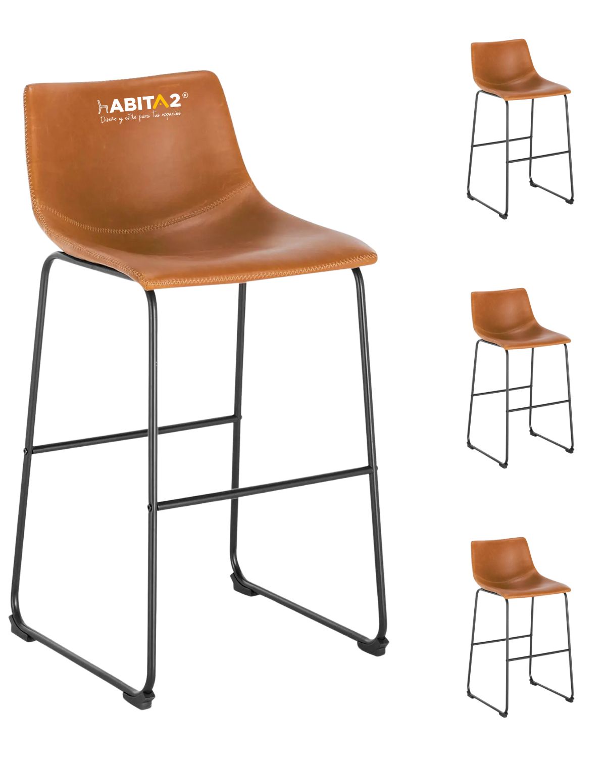 Habita2 Chile - Pack 4 Taburetes Leah Asiento De Cuero 65Cm Alta Calidad Base Matalica | Lider Electrohogar