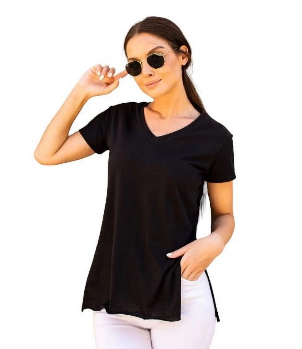 Home Fashion - Polera Mujer Negro Manga Corta Cuello V Talla S