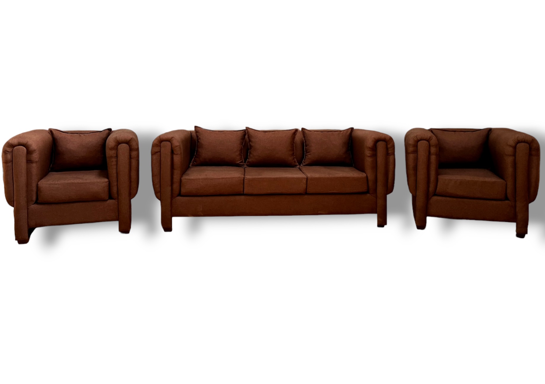 Juego de Living Barra Design Estocolmo Sofá 3 Cuerpos + Dos Sillones 1 Cuerpo Café