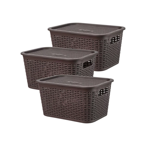 Importclick - Pack 3 Cajas Organizadora Ratán 6 L Marrón Oscuro | Lider Electrohogar