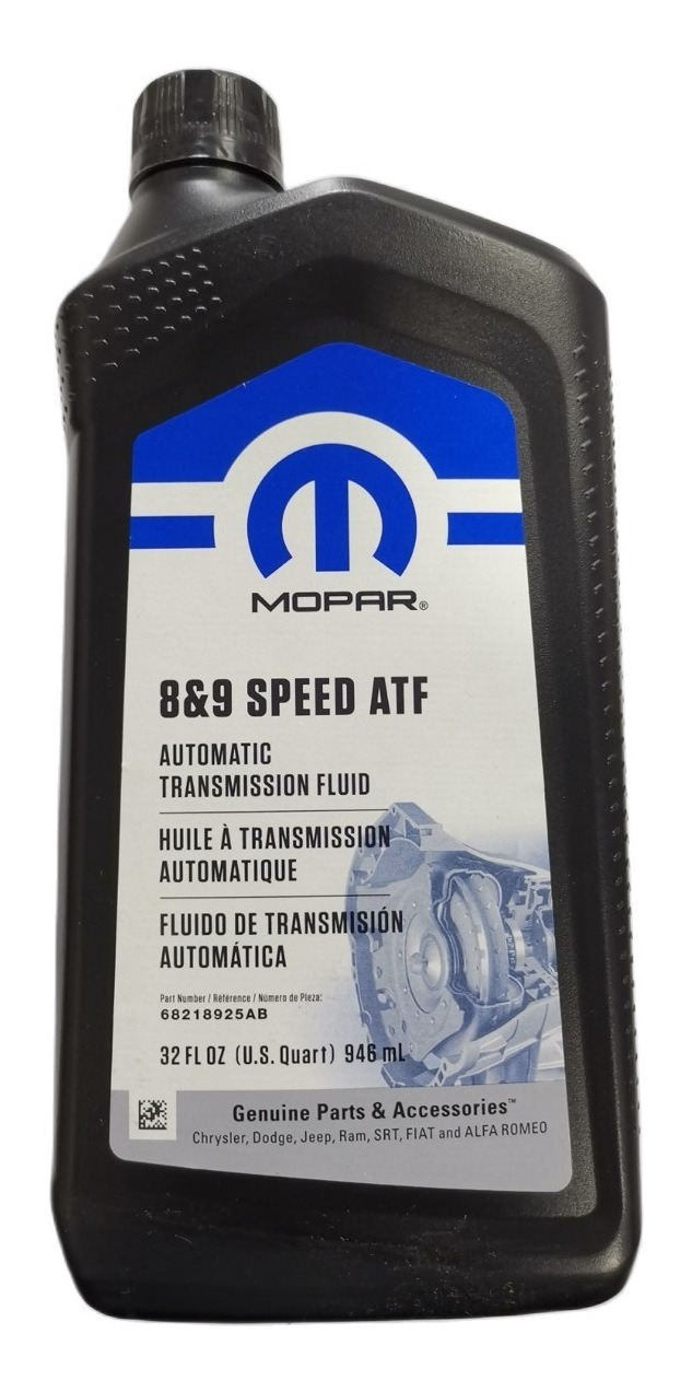 Bienvenido a la tienda oficial de rc parts aceite transmisión automática mopar 8&9 speed atf 946ml caracteristicas: - marca: mopar - volumen: botella 946 ml - origen: usa - grado de aceite: 8&9 speed - categoria servicio: automóvil - tipo contenedor: botella aplicabilidad: transmisiones dodge / jeep / ram