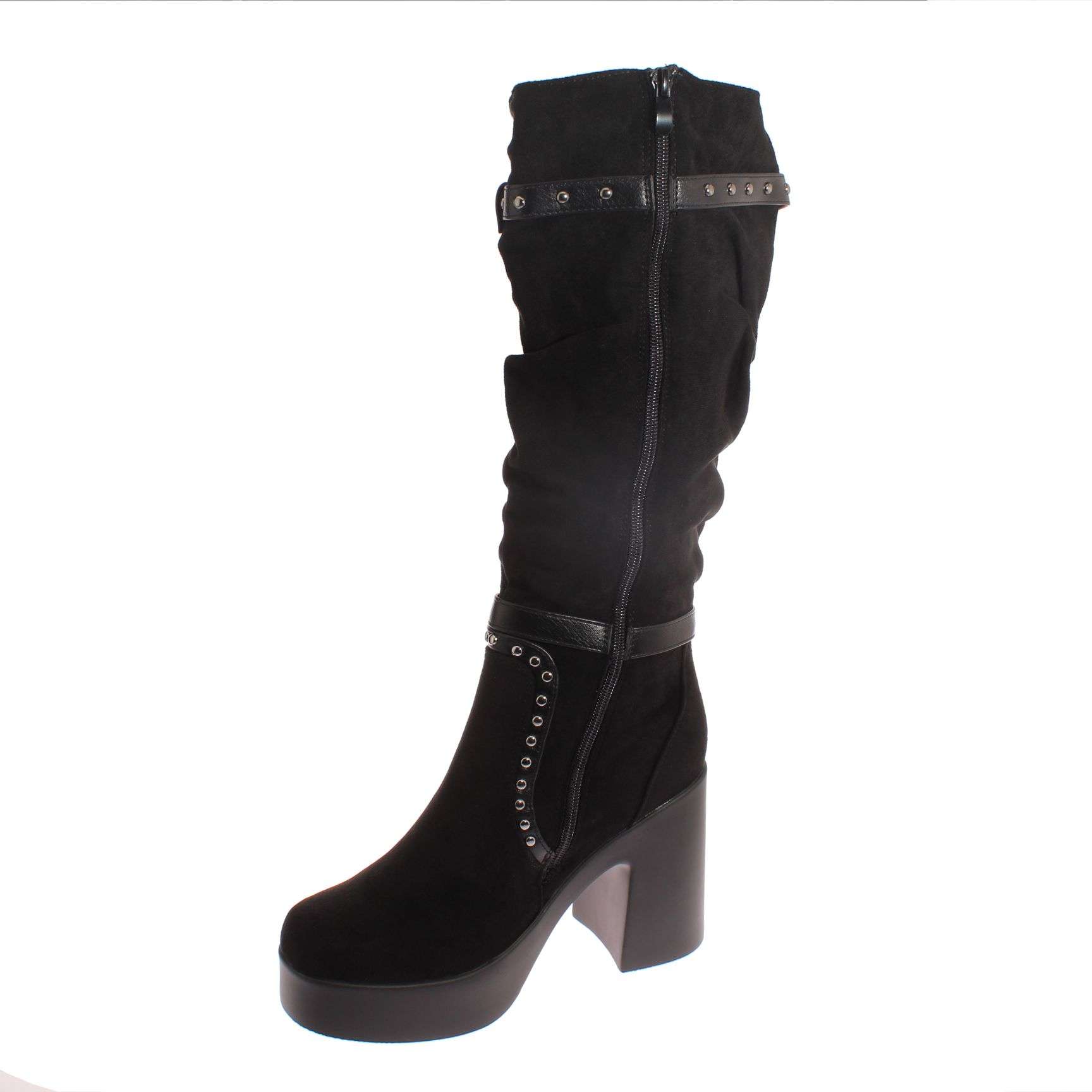 Tipo de producto: bota calce al número de la horma de chile. color: negro. marca: pand-g. modelo: 5pg243131black. material exterior: textil. material interior: textil. material suela: pvc. altura caña: 36 cm. altura taco: 11 cm. contorno de la caña: 39 cm. tipo de punta: redonda. empeine: cerrado. tipo de ajuste: cierre. ocasión: urbano. el número 38 calza para un pie de largo 23,5 cm. el contorno de la caña en su parte más ancha es de 39 cm.
