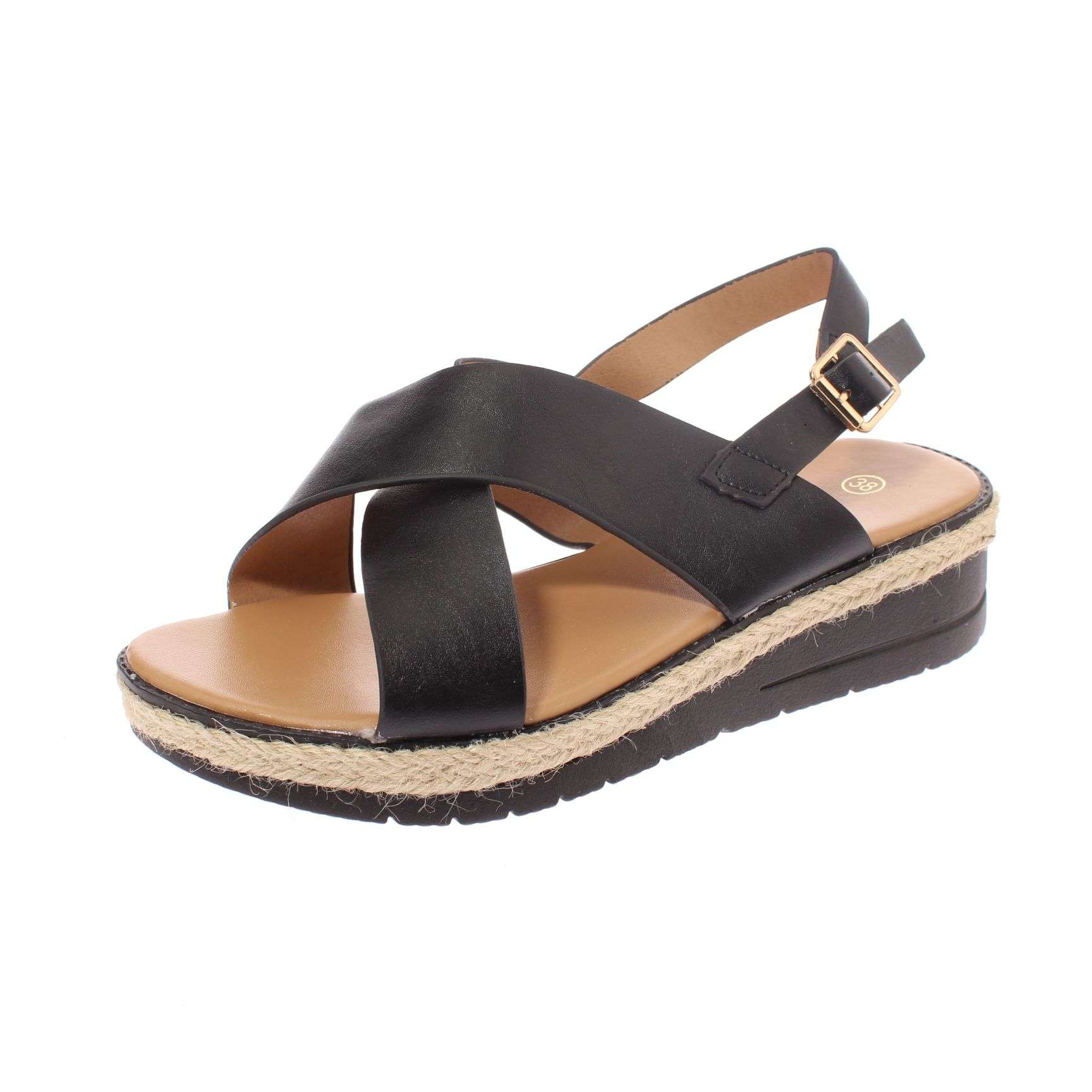 Tipo de producto: sandalia importante: la horma de este calzado es pequeña, para un calce perfecto se debe pedir un número más, por ejemplo, si calzas 38 tienes que comprar un numero 39. color: negro. marca: vía franca. modelo: 52110b31104black. material exterior: poliuretano. material interior: poliuretano. material suela: poliuretano. altura caña: 6 cm. altura taco: 5 cm. contorno de la caña: 22 cm. tipo de punta: abierta. empeine: semi descubierto. tipo de ajuste: hebilla. ocasión: casual. el número 38 calza para un pie de largo 22,5 cm. el contorno de la caña en su parte más ancha es de 22 cm.