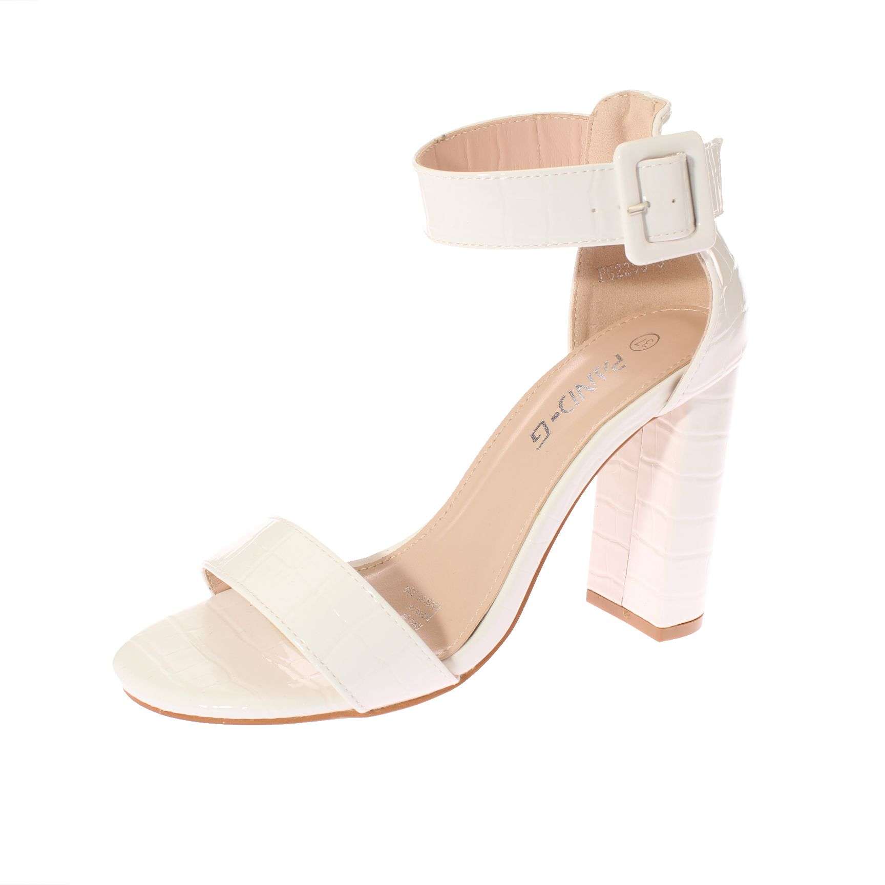 Tipo de producto: sandalia fiesta calce al número de la horma de chile. color blanco. marca: pand-g. modelo: 5pg22535white. material exterior: poliuretano. material interior: poliuretano. material suela: poliuretano. altura caña: 7 cm. altura taco: 10 cm. contorno de la caña: 18 cm. tipo de punta: abierta. empeine: semi descubierto. tipo de ajuste: hebilla. ocasión: fiesta. el número 37 calza para un pie de largo 22.8 cm. el contorno de la caña en su parte más ancha es de 18 cm.
