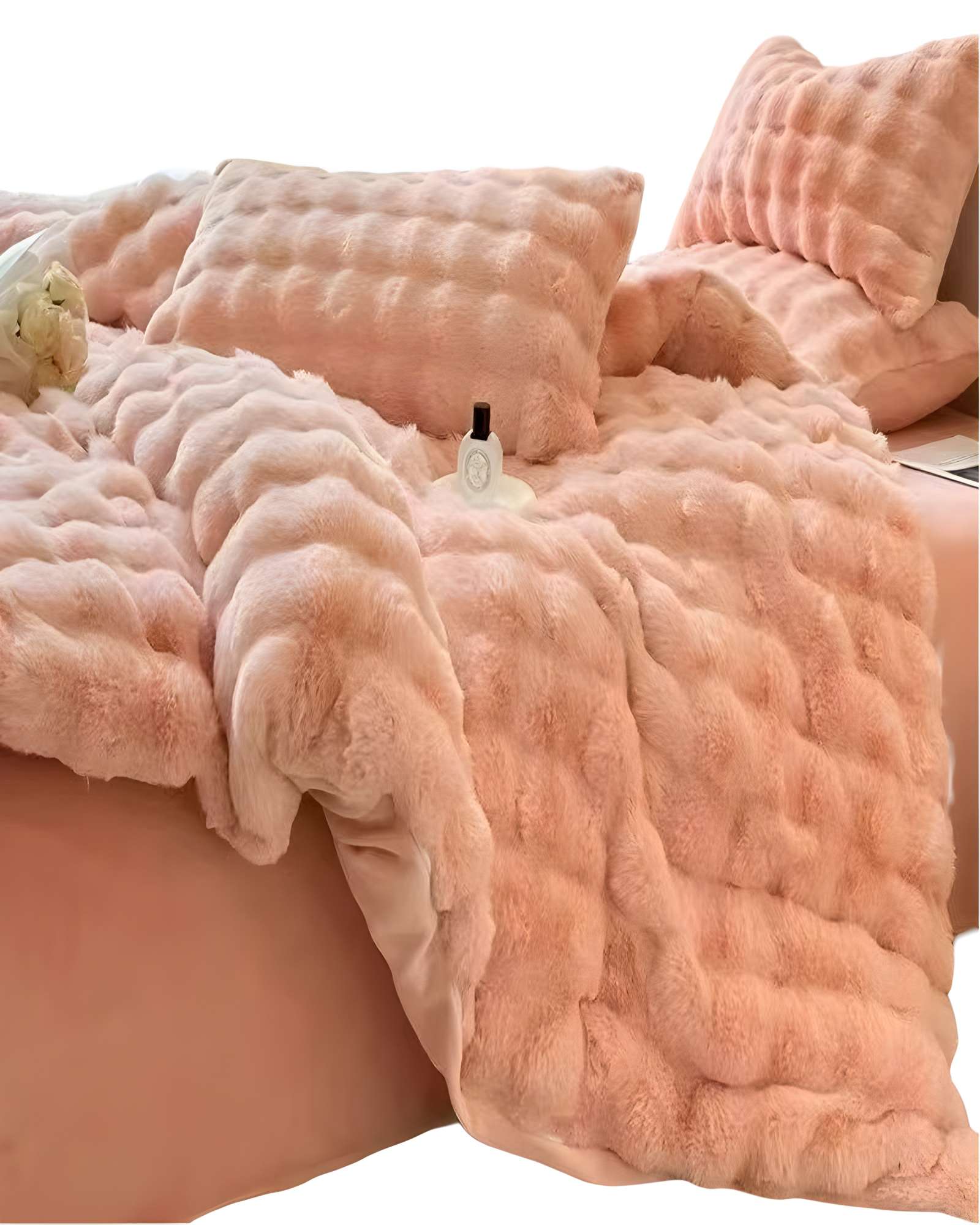 COBERTOR IMITACION DE PIEL DE CONEJO CON CHIPORRO SALMON