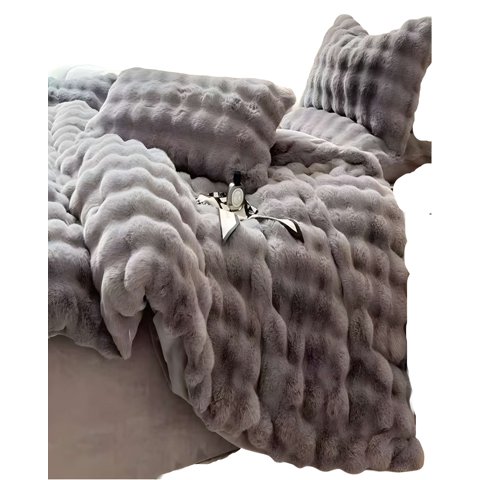 COBERTOR IMITACION DE PIEL DE CONEJO CON CHIPORRO GRIS