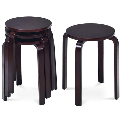 Juego De 4 Taburetes Apilables De Madera Curvada Costway 46 Cm De Altura