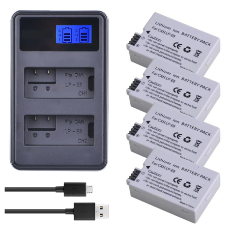 Genérico - 4 Baterías Lp-E8 + Cargador Doble Lc-E8 Alternativo Canon | Lider Electrohogar