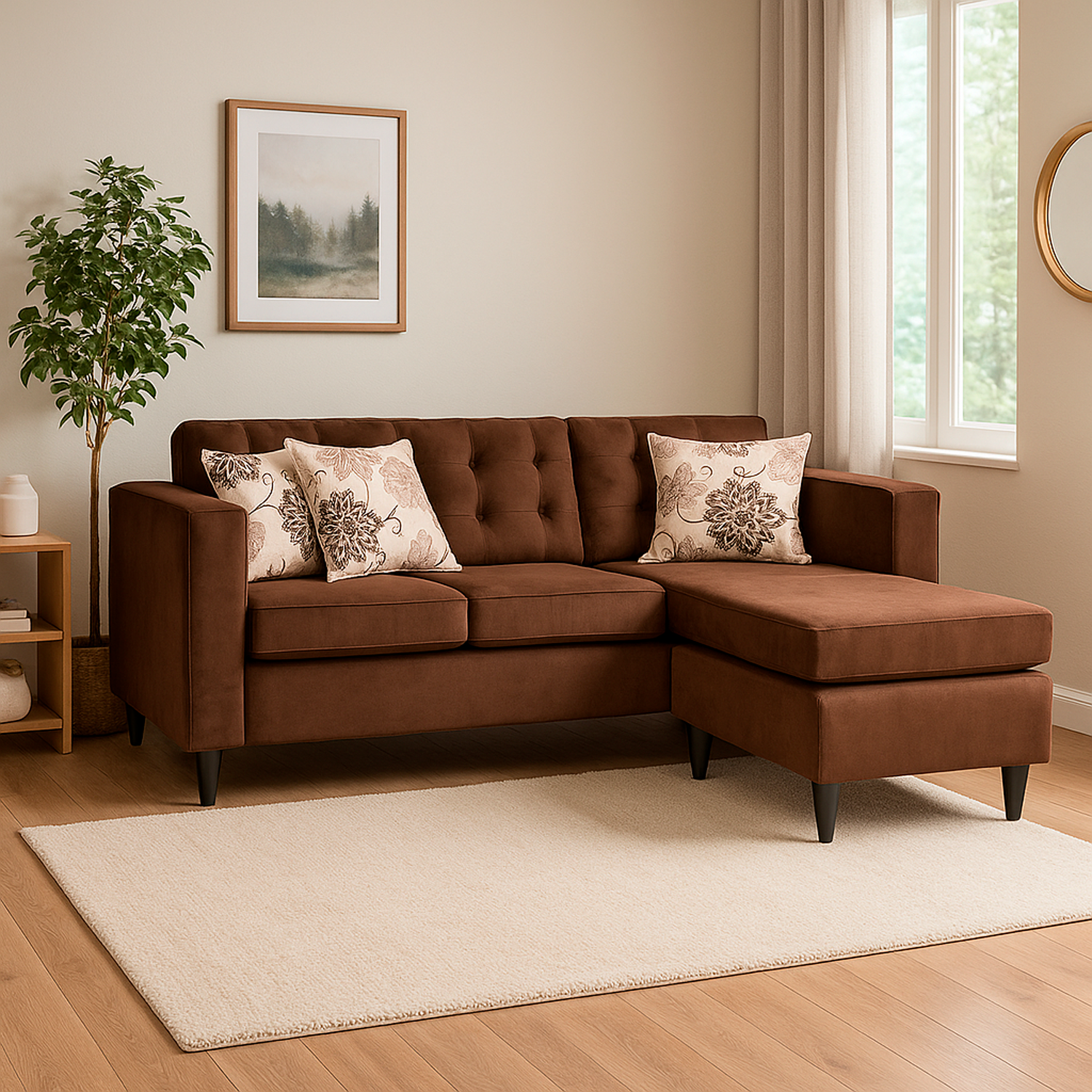 Focus - Sofá Venecia + 2 Puff Felpa Café