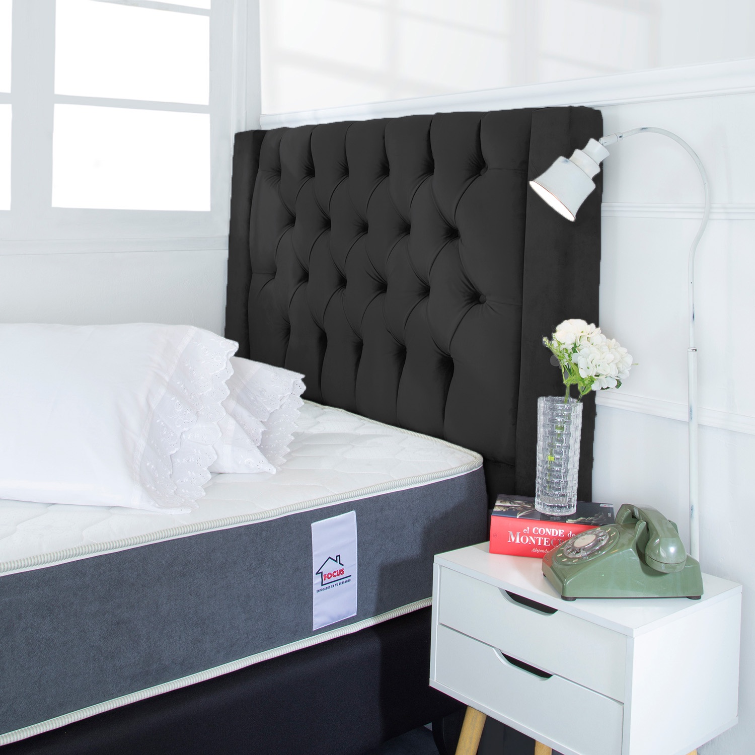 Muebles Barcelona - Respaldo De Cama 1.5 Plazas Valencia Felpa Negro
