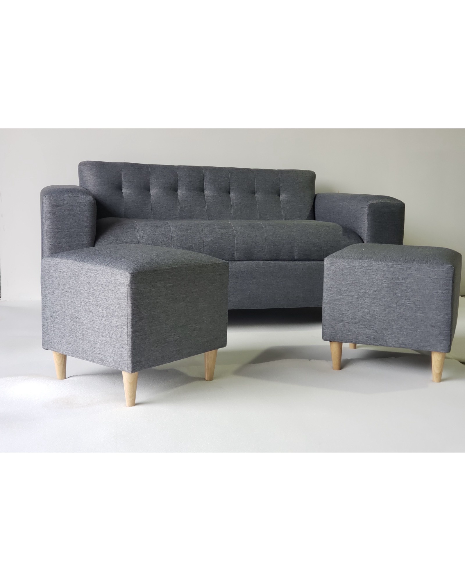 Muebles New - Sofa Dos Cuerpos Mas Dos Puff Gris Lino