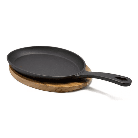 Genérico - Plato De Hierro Fundido De 23 Cm Con Base De Madera