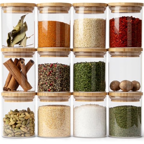 Wakeshome - 12 Frascos Especias Con Tapa De Bambú + Etiquetas Adhesivas | Lider Electrohogar