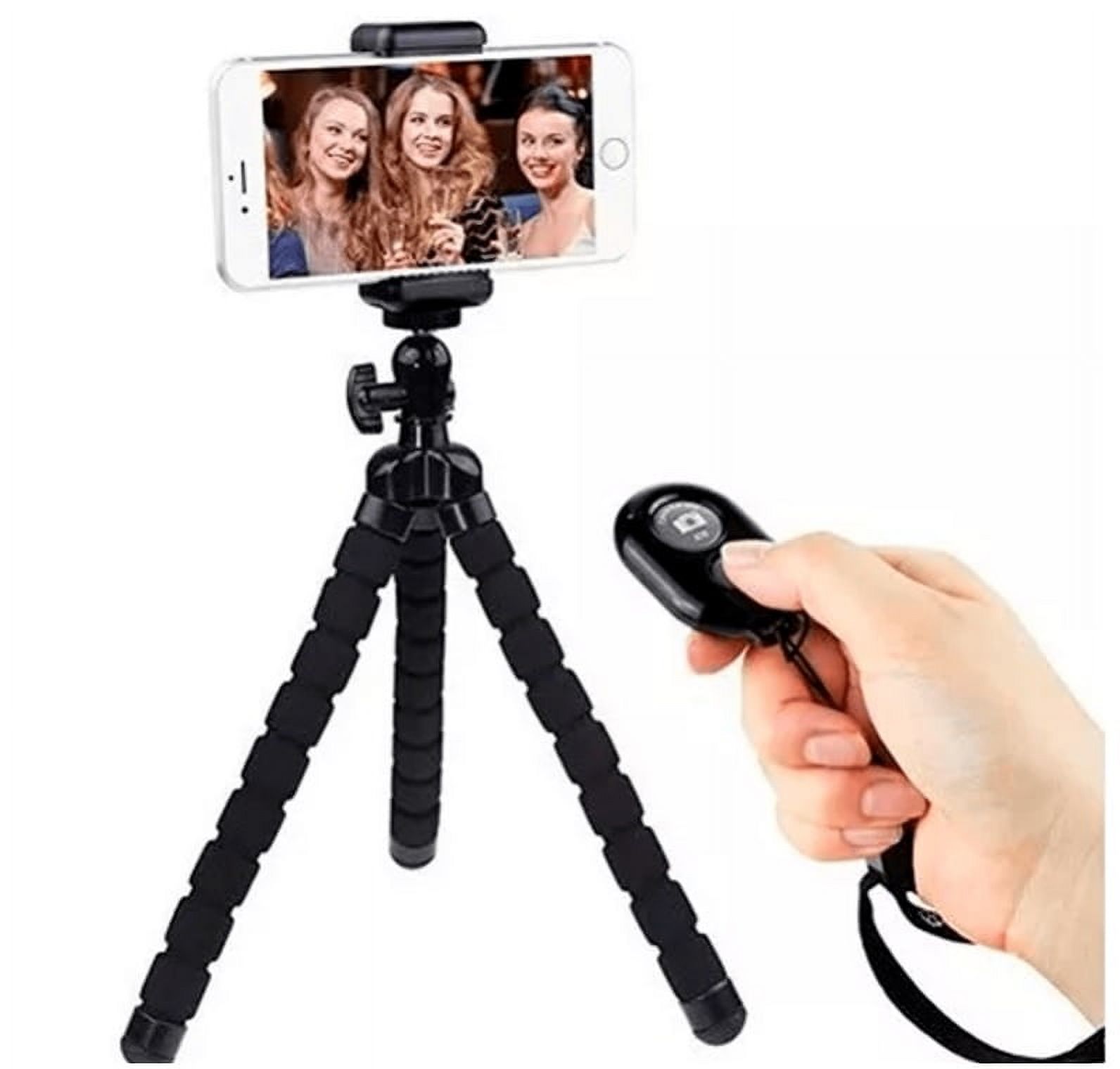 Trípode bluetooth st04 – control bluetooth ezra. tiene una altura de 27 cm. sin la base y 32 cm. con la base del celular. ideal para captura de fotos o vídeos en el celular a distancia. este trípode cuenta con pies flexibles firmes para tener un mejor ángulo de visión y poder colocarlo en cualquier lugar. este paquete incluye además un control bluetooth para poder hacer capturas de vídeo o fotos a distancia. con un alcance máximo de 10 metros. compatible con sistemas android y iphone.