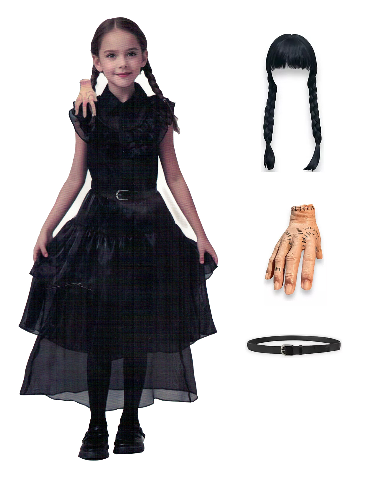 Tododisfraceschile - Disfraz Vestido De Merlina De Fiesta Con Peluca, Mano Y Cinturón Talla 110 | Lider Electrohogar