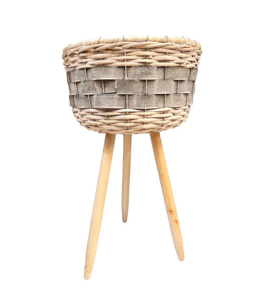 Macetero tejido fibras y madera rustico porta maceta bambu g