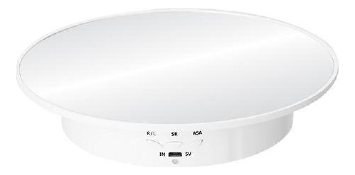 Base giratoria 360° para exhibición fotografía 3 velocidades 20 cm diámetro. una opción perfecta para la exhibición, promoción y fotografía de diferentes productos, con rotación de doble dirección y 3 velocidades regulables puedes mostrar o captar imágenes de los productos en todos sus ángulos. características: - base giratoria con tres velocidades, de 2, 4, y 7,5 revoluciones por minuto respectivamente. - la capacidad máxima de carga es de 3kg. - función de rotación hacia adelante y hacia atrás. - configura la función de rotación de ida y vuelta según el ángulo de rotación. los ángulos de rotación de ida y vuelta se pueden ajustar a 90-180 grados respectivamente. - puede ser usado conectado a la corriente mediante cable usb o puede ser usado con pilas (pila 18650, no incluida) así puedes llevarlo a cualquier lugar que desees. - 3 botones para controlar sus funciones: r/l: cambiar en sentido horario o anti-horario sr: regulación de velocidad. asa: regulación de ángulo, circulación de 90 °/180 ° especificaciones: - color: blanco. - material: plástico abs - encendido: toca cualquier tecla - apagado: mantenga pulsada cualquier tecla durante 3 segundos - capacidad: 0-8kg - tamaño: 20 x 20 x 4 cm - peso: 282g incluye: - 1 base giratoria. - 1 cable usb. **¿necesitas factura? una vez echa la compra envíanos un mensaje con los datos del receptor y te la haremos llegar a la brevedad.
