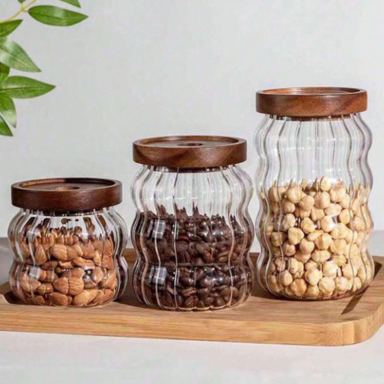 Santú Home & Deco - Frascos De Vidrio Tapa Madera Y Ondas Set 3Un | Lider Electrohogar