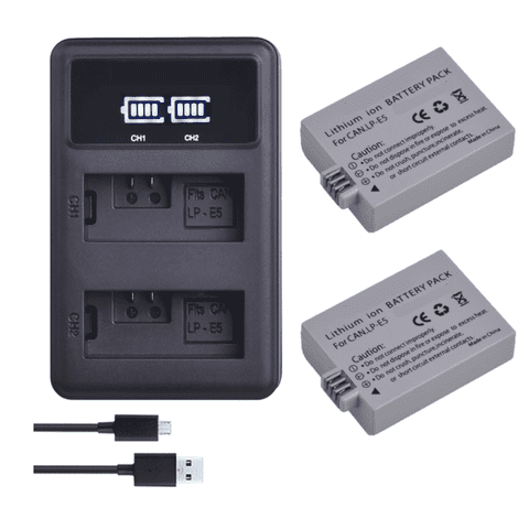 Genérico - 2 Baterías Lp-E5 + Cargador Doble Lc-E5 Alternativo Canon | Lider Electrohogar