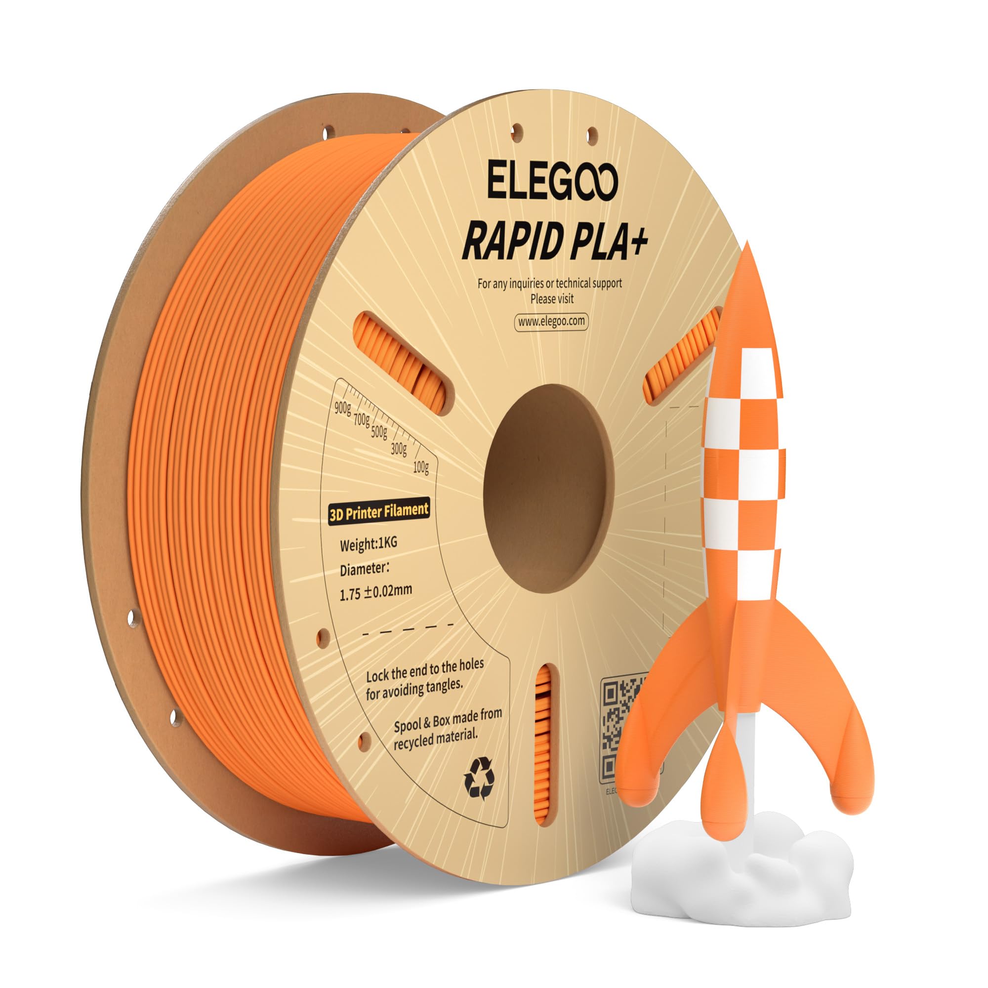 Filamento Para Impresora 3D Elegoo Rapid Pla Plus De 1,75 Mm, Naranja, 1 Kg