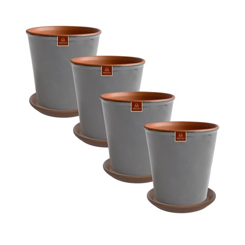 Pottery - Set De 4 Macetas Zaia 15 Cm Gris Matte Y Sus Platos | Lider Electrohogar