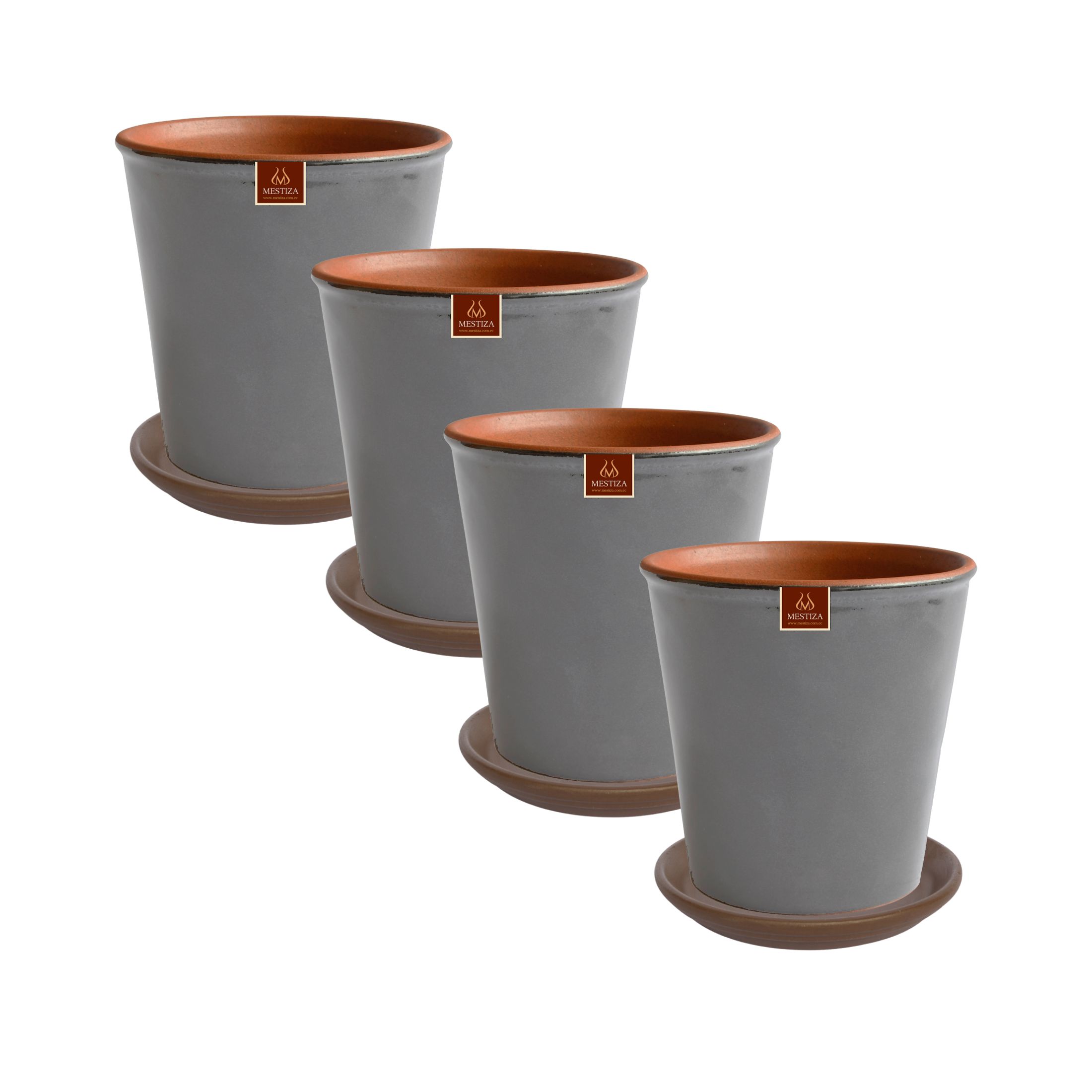 Pottery - Set De 4 Macetas Zaia 15 Cm Gris Matte Y Sus Platos