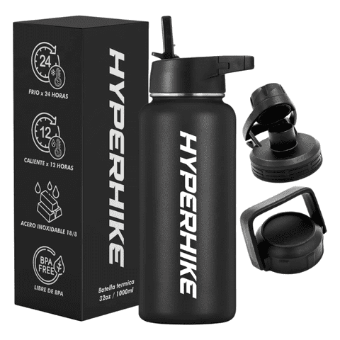 Termo Acero Inoxidable 1Lt Hyperhike Botella Térmica 3 Tapas Negro | Lider Electrohogar