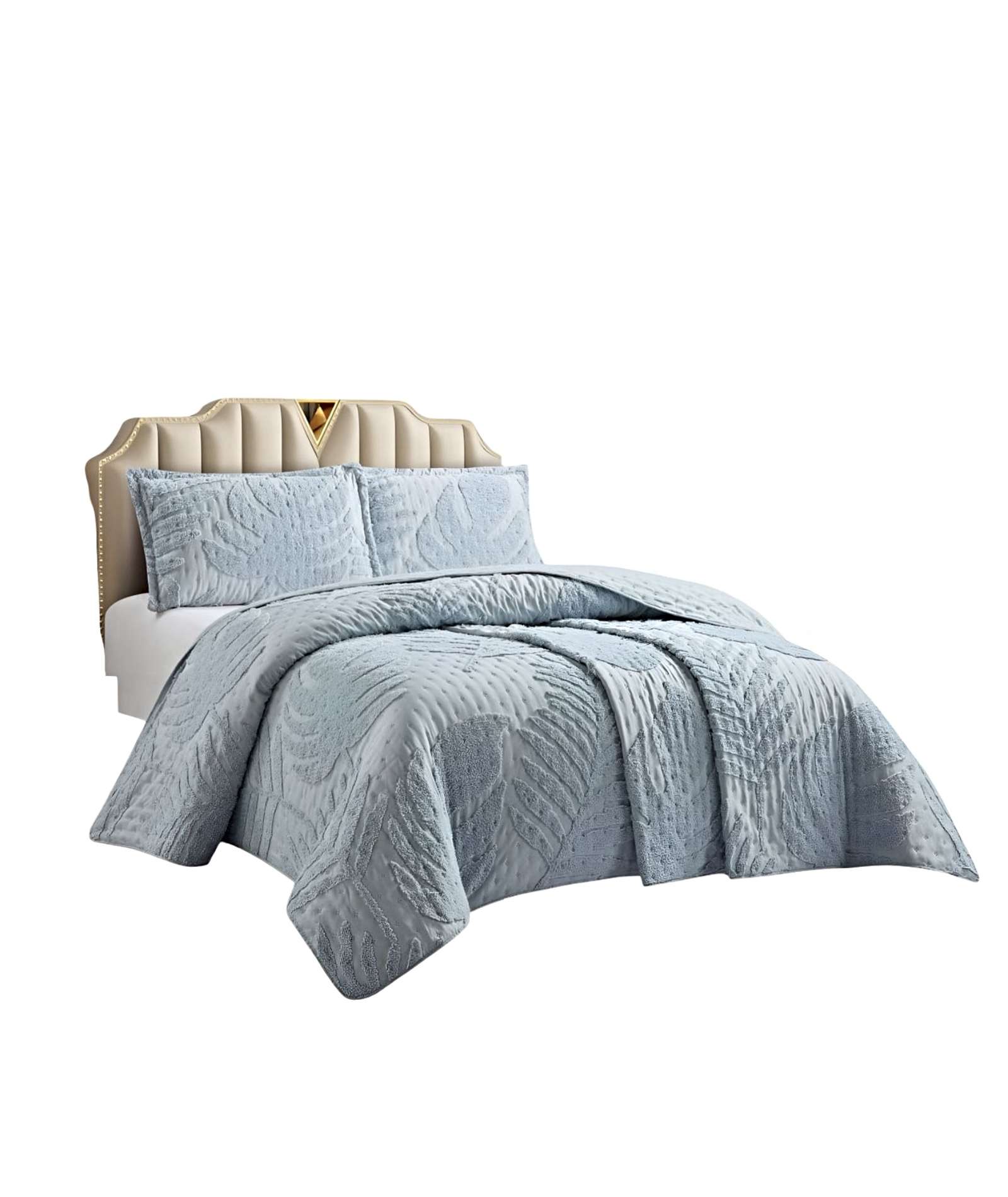 Teng Fei - Cubrecama Quilt Con Diseño Hoja Relieve Plaza Y Media Azul | Lider Electrohogar