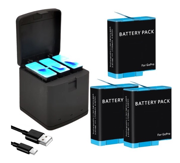 Genérico - Kit Cargador Triple + 3 Baterías Gopro 9, 10, 11, 12 Alternativa | Lider Electrohogar