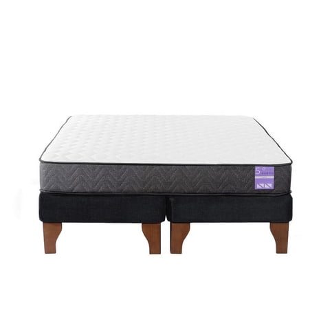 5° Sueño - Cama Europea Stella 2 Plazas 150X190 Cm Base Colchón Madera Negro