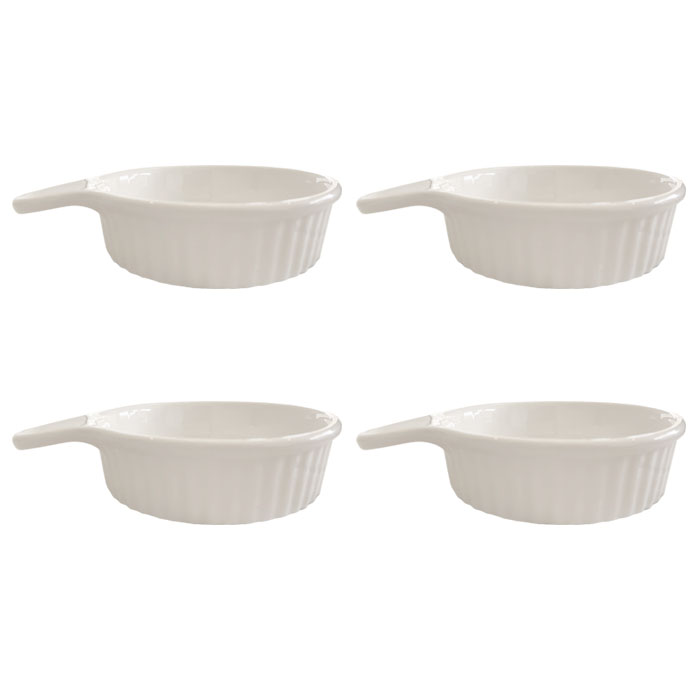 Set de 4 pocillos de porcelana color blanco. alto 3 cm. diámetro 13 cm.
