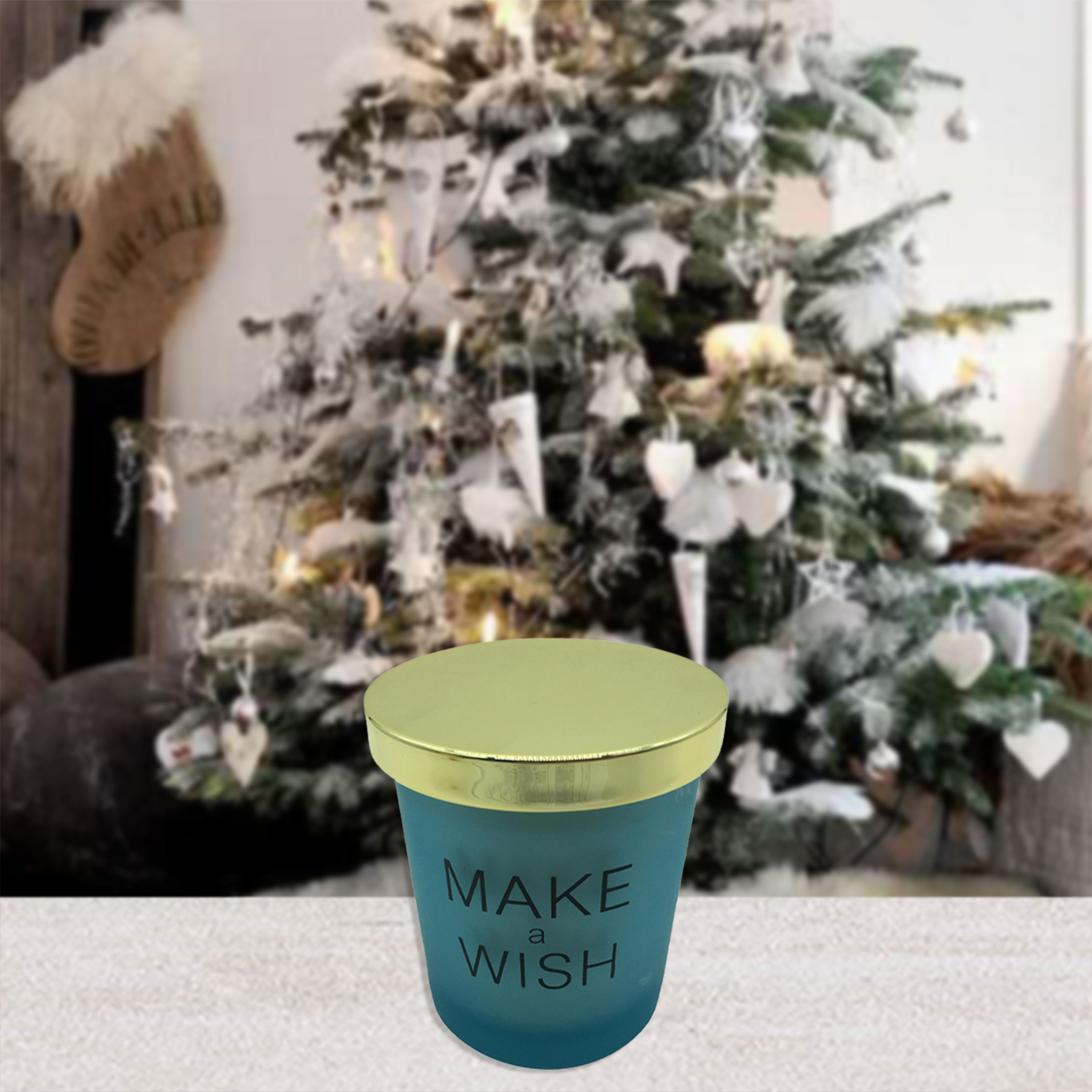 Vela decorativa con aroma wish color turquesa con dorado 360grs. mide 8.4 centímetros de alto, 7 centímetros de ancho y 7 centímetros de largo, se compone de 50% vidrio, 47% parafina y 3% fragancia. especial para decorar tu hogar con estilo y ser ambientada con nuestra vela decorativa con aroma smile