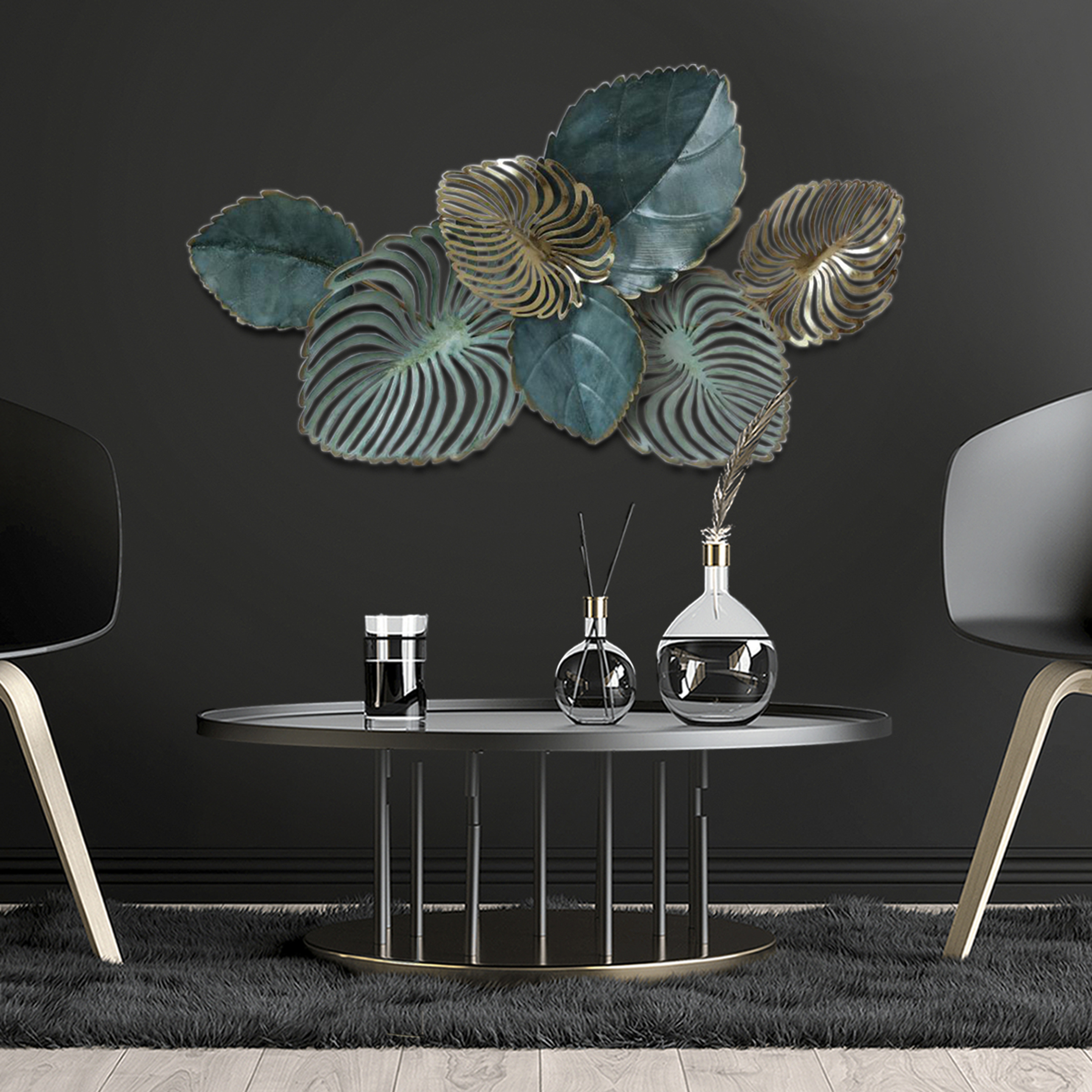 Placa mural decorativa amanda colores petróleo gris y dorado, sus medidas son 50.8 centímetros de alto por 90.2 centímetros de largo y 7.0 centímetros de ancho, se compone de 100% hierro. la puedes ambientar horizontal o vertical en tú entrada, living, comedor, pieza o terraza. con un diseño exclusivo, especial para decorar tu hogar con estilo.